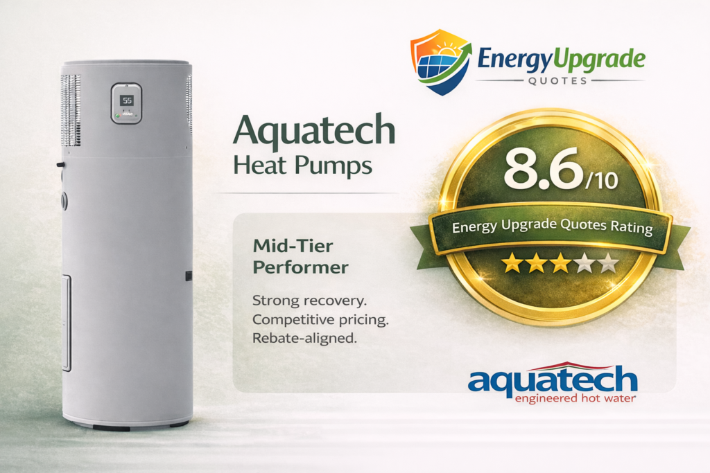 Aquatech delivers one of the strongest value-for-money heat pump packages in the Australian rebate-aligned market.