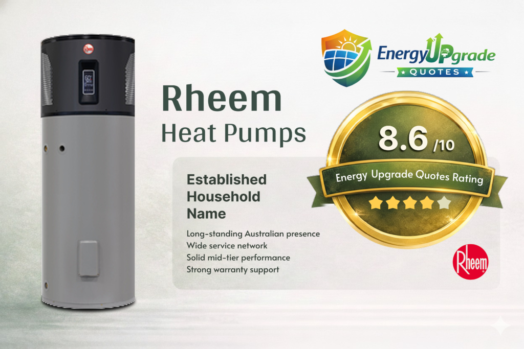 Unlike specialist heat pump-only brands, Rheem is heavily diversified across electric storage, gas, solar hot water, commercial systems, and HVAC categories. This broad footprint gives Rheem strong installer coverage, brand familiarity, and national service reach.